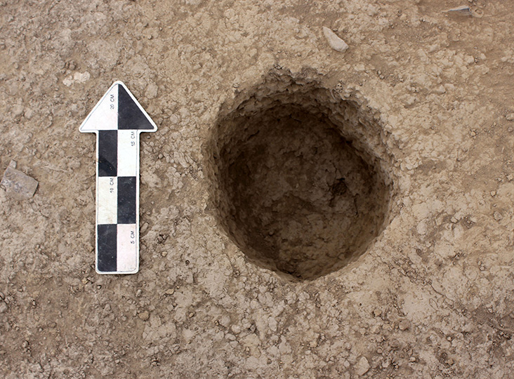 La superficie de la vivienda presenta 24 orificios (3 centímetros de diámetro por 3 o 4 de profundidad), dentro de los cuales se encontraron pedazos de carbones.