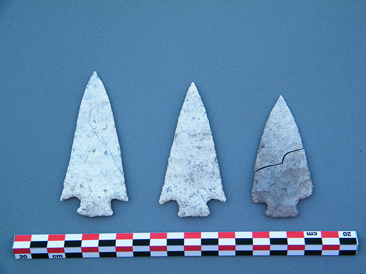Entre el relleno de muros y sobre el suelo, se descubrieron puntas de proyectil, cuatro en total del tipo denominado Ciénega, de forma triangular y pedúnculo (equivalente a un tallo). Por lo regular estas han sido recuperadas en sitios de los primeros agricultores, de donde se desprende la época en que la morada fue habitada.