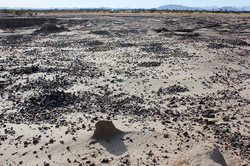 La arqueóloga puntualizó que estos vestigios culturales están entre los sedimentos del abanico aluvial que se forma al pie del monte de la Sierra Boquillas, lo que causa que la erosión los saque a la superficie.